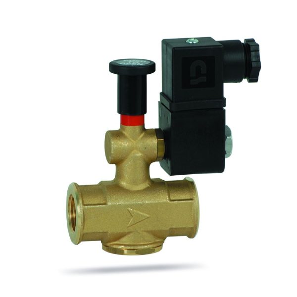 Normally open electro-valve for gas with manual reset. The term normally open refers to the fact that during normal operation there is no electrical absorption. In order to close the valve for the interruption of the gas supply, it is therefore necessary to power the electro-valve.